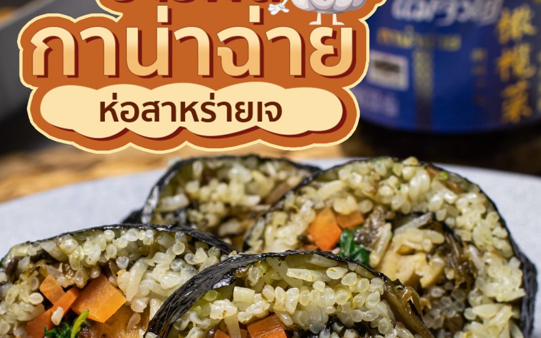 #แม่จินต์ชวนเข้าครัว วันนี้แม่ขอเอาใจคนกินเจกันนิด กับเมนูฟิวชั่น ข้าวผัดกาน่าฉ่ายห่อสาหร่ายเจ ที่ได้แรงบันดาลใจมาจากเมนูคิมบับ วิธีทำก็ง่ายมากๆ เริ่มจาก